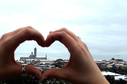 So this week started off a little slow. Classes started which took up most of my days but I still managed to do some wandering and found a few more of the Contrada fountains, Chiocciola (Snail), Selva (Forest/Rhino), Drago (Dragon), Valdimonte (Ram). Its crazy how these fountains are everywhere and no where at the same time, scattered throughout the city right under our noses. Only ten more left to find! While the snow Thursday night and Friday morning in Siena was nothing compared to what friends and family are stuck with right now, it was a big deal for the Sienese. Barely any snow was on the streets and halfway through the day on Friday it started to melt off the roofs as well but everyone was still decked out in full out winter attire. We decided to take part in the fun and see the snow around the city and then from the Fortezza. We passed a few small snowmen on our way and even made one of our own. Looking out onto the city with the medieval buildings covered with a slight dusting of snow was just another experience that makes me love Siena. Yesterday was an impromptu trip to San Gimignano. San Gimignano is a medieval city on a hill about an hour outside of Siena and is sometimes known as Tuscany's Manhattan with its tall towers, built by competing families as a sign of their wealth and power, scattered around the city. Just walking around the wall seeing the city and the amazing panoramic view of the Tuscan countryside made this day unforgettable!