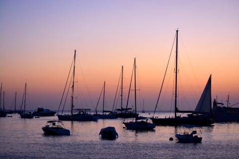Sun setting in the harbor of Port d'Andratx on Mallorca