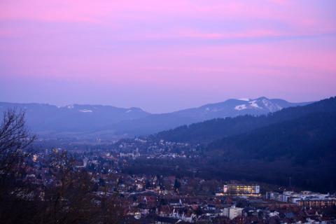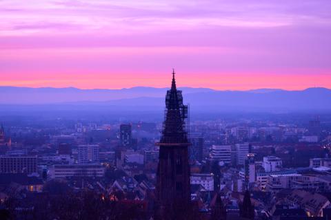 Freiburg from above at sunset - this photo would be amazing if the münster didn't have all that scaffolding on it...