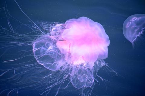 Jellyfish eating other jellyfish in the harbor of Helsingør, Denmark