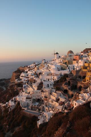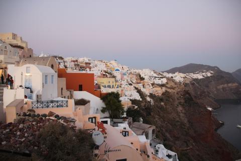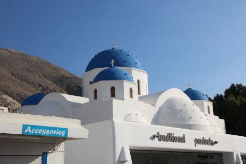 We toured all of Fira, whether on foot or on a donkey and we discovered two magnificent beaches, one covered with red and black lava rocks, the other with black sand. We saw (as it seems) all of the small white and blue churches that can be found in any corner of the island and we even found a fortress that is connected to one of the churches. On top of that we ate as much gyros and tzatziki as possible and finished off our nights with the most breathtaking sunsets. I highly recommend watching the sunset from the town Oia, that is located at the northern tip of Santorini. From there one can not only see the volcano island, but also all of the coastline, dotted with the houses that make up Fira, Imerovigli, and other small towns. These sights, as well as the beautiful town of Oia itself, seem to be transformed as the orange and pink rays of the setting sun hit the white houses.