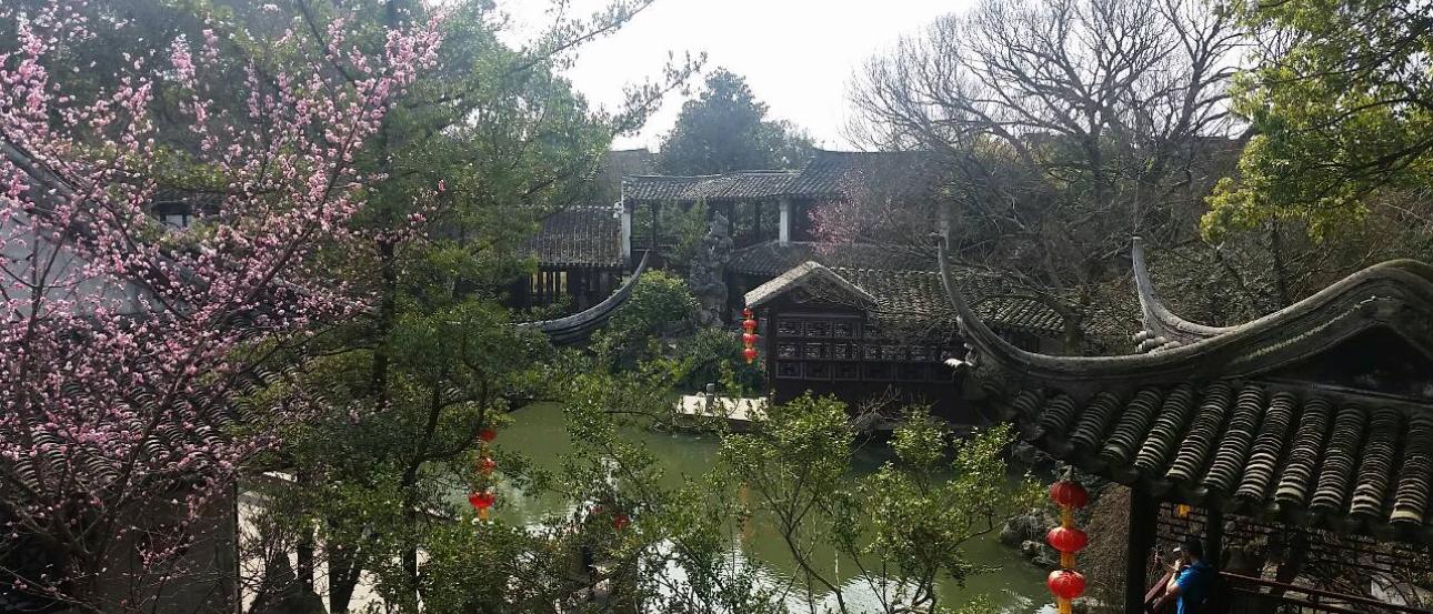 On Friday, IES Abroad took all of us on a field trip to Tongli Watertown,which is a two-hour van ride outside of Shanghai. Tonsil is a small town on the outside of Suzhou, and is well-known for the system of canals that run through the town, which is why it is sometimes called the “Venice of the East.” Tongli also has a famous private garden, the Retreat & Reflection Garden, which we got to walk through. I’m not entirely clear on whether or not the garden was also a residency when it was built, but there are many rooms that are built around the main garden which were once used for hosting guests. The courtyards were very interesting because they were all made with the Chinese practice of fengshui in mind. For example, the rainwater is directed from the roof into the courtyard, as the collection of water is considered good fortune in the town. Because there was the expectation of rainwater collecting in the courtyard, the flooring is made out of an intricate pattern of small stones with ample open ground within the pattern for the rainwater to easily soak into the ground. Each corner is also adorned with a square stone that is carved to look like the traditional coins.