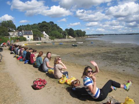 A group of IES students enjoy the sun, the sea and sandwiches during off-site orientation.