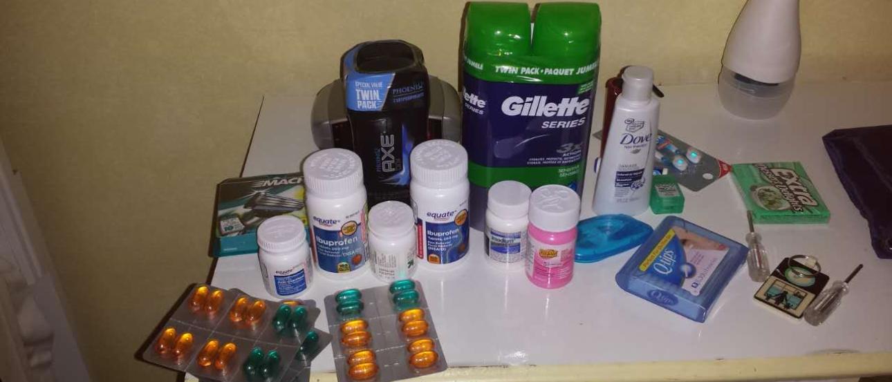 Sore throat spray, Advil/Tylenol, cough drops, decongestion medicine