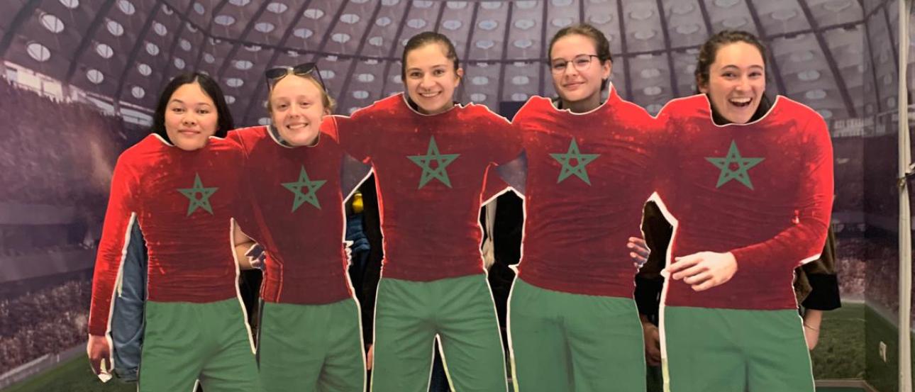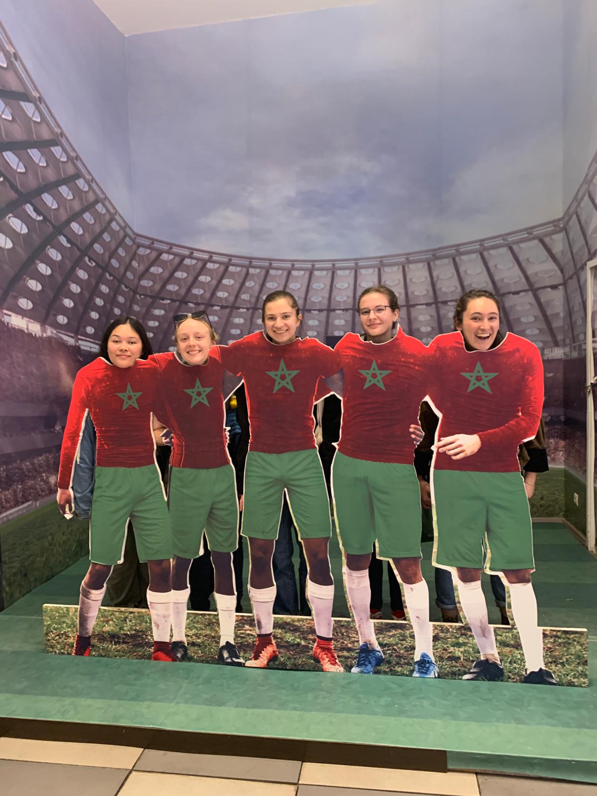 An ear-splitting scream of victory echoed in my ear as my friend shot up out of her seat, clapping wildly with the rest of our group. Morocco had won, 2-0, and would be continuing on to the next game!