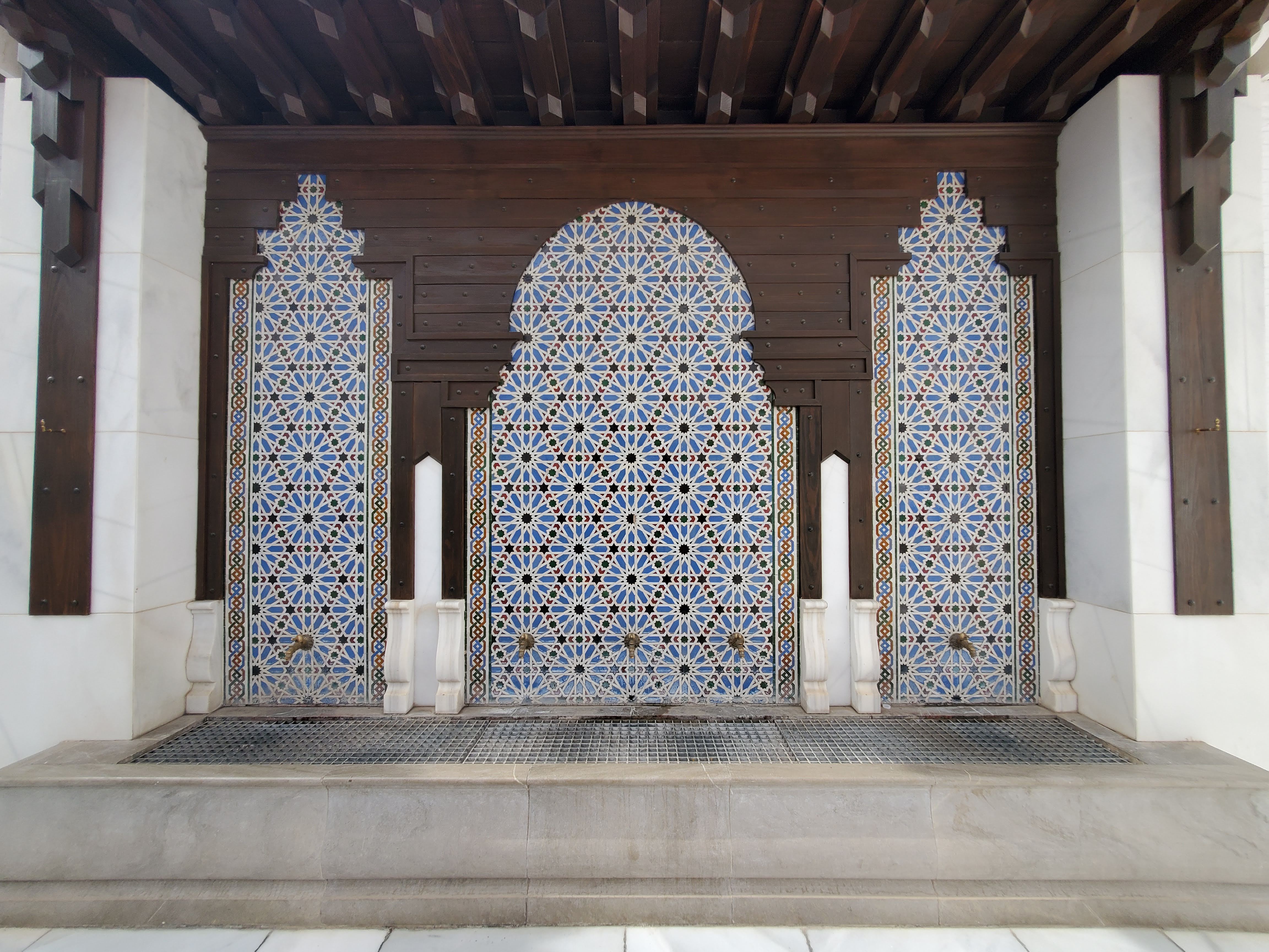From the palace gates, we made our way into the maze-like Old Medina of Fez. Surrounded by vendors shouting prices and conversing with customers, as well as piles upon piles of various goods, I was initially incredibly overwhelmed. All that existed was chaos, and I could barely think in the midst of everything that was going on. Then, we stepped through the doors to the Al-Attarine Madrasa, and it was as if we had entered a man-made oasis of peace. The tiled floor surrounding a floral fountain made of marble, the high arches covered in mosaics and carved calligraphy of Qu’ranic verses, and the open ceiling created a wide open space in which you could breathe and be one with a spiritual beauty that permeated every aspect of the space. To this day, it is one of my favorite testaments to Islamic architecture. However, in my opinion, the Al-Attarine Madrasa’s beauty was easily surpassed by the beautiful behemoth of the Hassan 2nd Mosque in Casablanca.