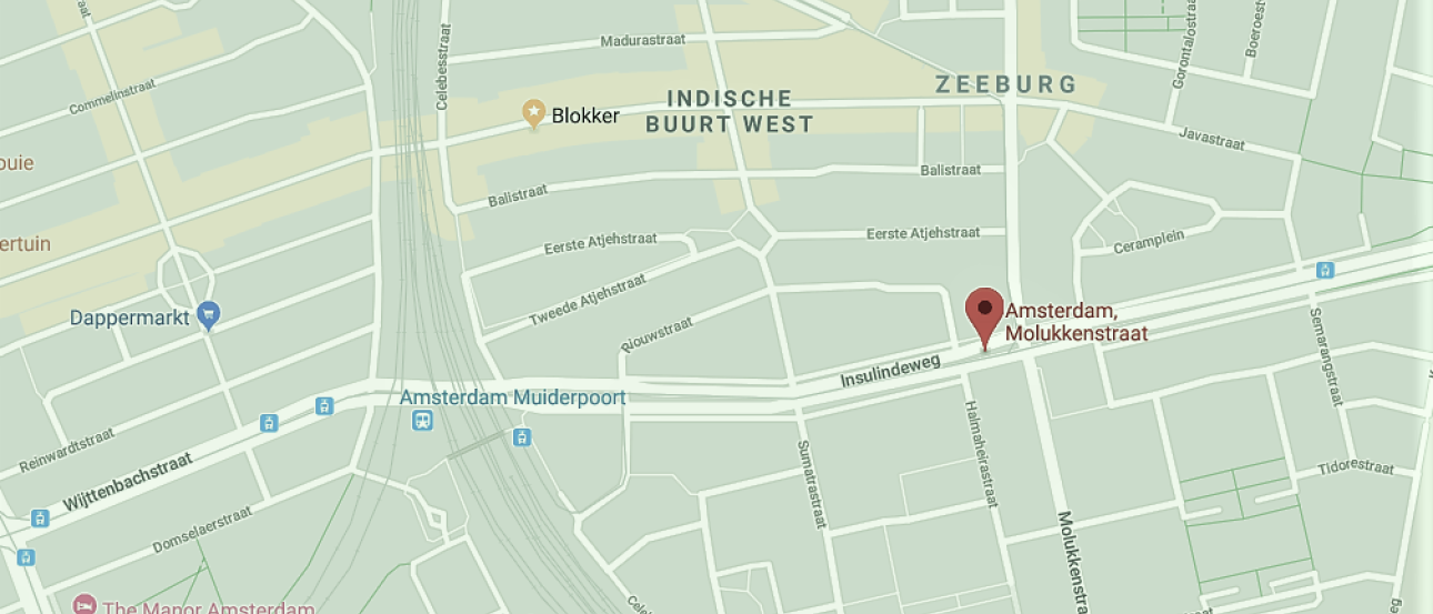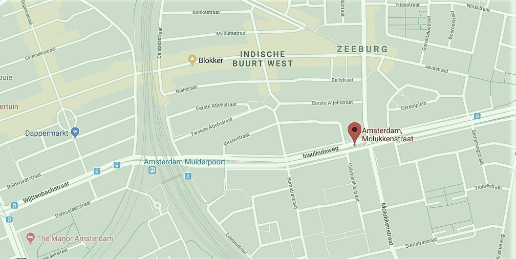 There’s nothing unique about the Molukkenstraat transit stop. Buses and trams continuously collect commuters from its four shelters, one of which hosts a map of the nearby streets. Such maps appear at every transit stop in Amsterdam, but some of the names on this particular map decidedly do not sound Dutch. Balistraat, Sumatrastraat, Tidorestraat. Ceramplein, Javaplein, Timorplein. Ambonstraat, Borneostraat, Halmaheirastraat. And of course, Molukkenstraat itself, located at the centre of the Indische Buurt neighbourhood in Amsterdam-Oost.