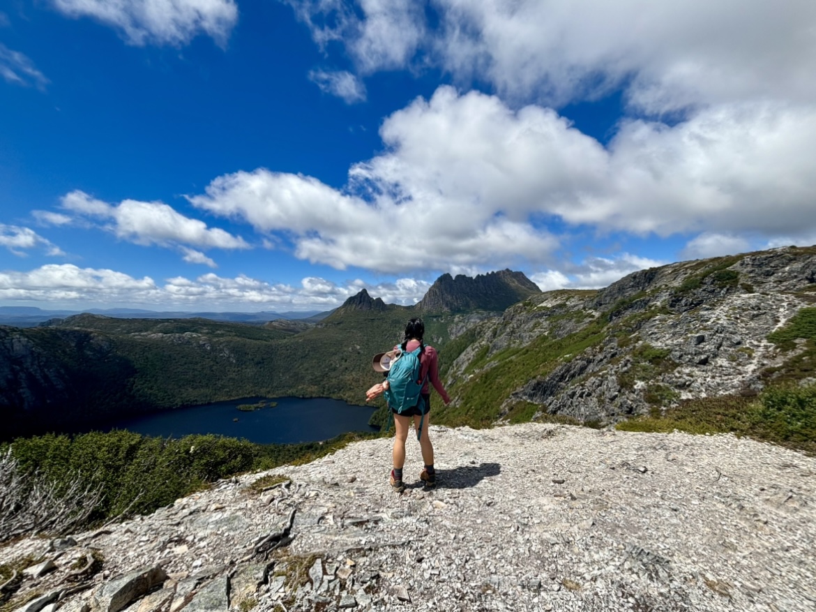 We continued the drive to Cradle Mountain and got on the shuttle to the trailhead. The bus ride offered gorgeous views of the park and our driver had a very funny sense of humor. Most of the group opted for the challenging hike to Marion’s lookout. We all shared the mindset that we came all this way so we might as well do it and be in it together. Tom led us up which was awesome. I really enjoyed the entire hike and didn’t find it too difficult. Every angle and elevation offered a unique and incredible landscape view. When we reached the summit of the hike, we were rewarded with the most insane 360 panoramic view. The water of Dove Lake shimmered so intensely below us, it reminded me of one of those paint gem projects but in real life. We got breathtaking views to Cradle Mountain and over to Crater Lake as well.