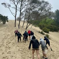When we got back to the bus, it immediately started downpouring. We quickly hit the road to our next stop. Henty Dunes is a series of giant dunes formed by the Roaring Forties. I was amazed at how far inland they were, which really highlighted the power of the wind. We climbed the dunes as the rain beat down on us. We only spent a short amount of time at the top before running down and taking shelter in the bus. This was definitely an experience where you just had to embrace the rain and make the most of the experience despite the conditions.
