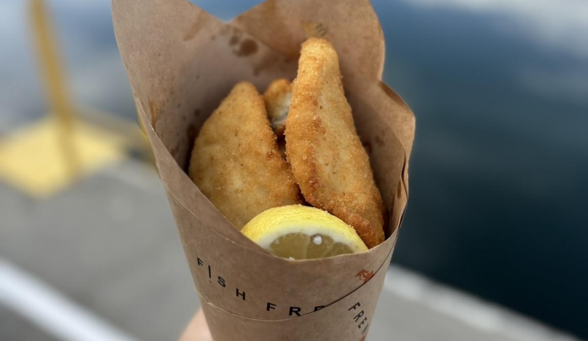 Our next stop was lunch at Pennicott’s beachside restaurant. I sat at a table with two older couples that I befriended in the group. We all got a round of sparkling wine, then each got three Tasmanian oysters to start. The oysters were very good, but I’m a Wellfleet Oysters fan until the day I die. The greatest difference between the two was the deep shell and creamier texture of the Tasmanian oysters. For our main course, we all got fish and chips with salad. For my second included drink, I got a glass of sauvignon blanc. Our guide gave us each a little spiced apple mead liquor shooter as a gift. I will give it to my dad when I get home. On our way out of the parking lot, we saw a regular and a white wallaby! This was an exciting moment for me, as it marked my first Australian wildlife sighting.