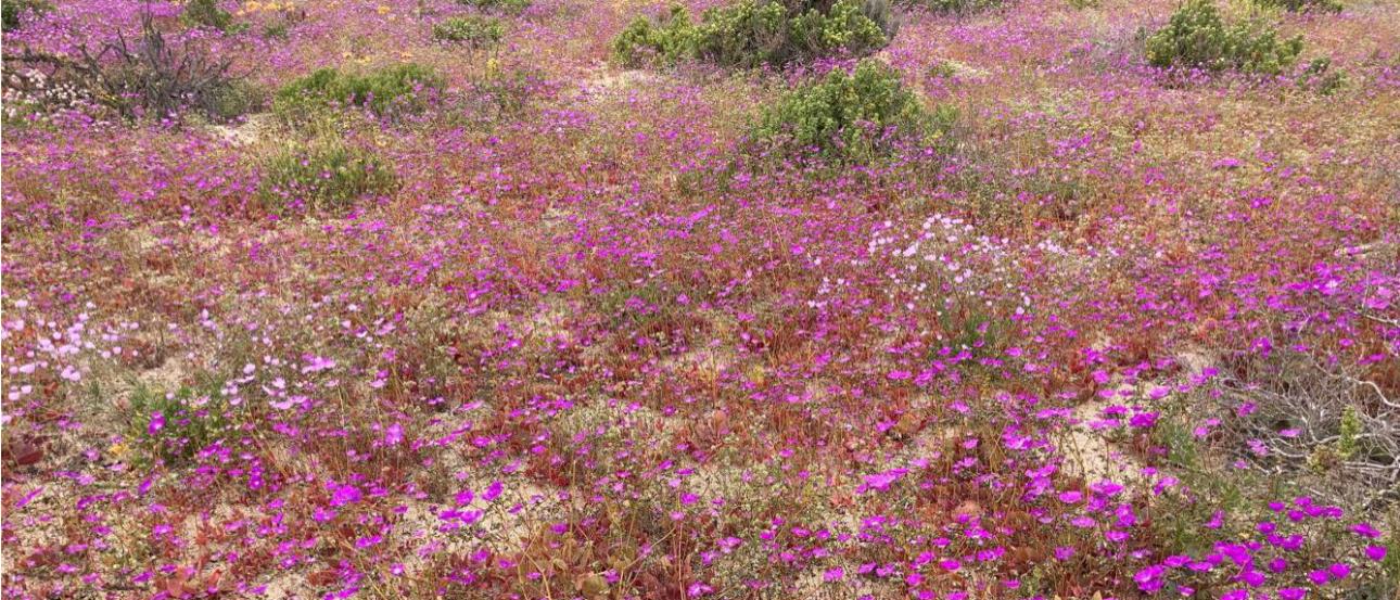 The Atacama desert in the north of Chile is the driest in the world. Due to climate change, it gets drier every year. Also because of the continuous change in climates, it only rains in the desert once every 4-6 years. The amount of rain it receives is miniscule, but the effects are gigantic. When the rain reaches the desert, it explodes in flora. Fuchsia, white, yellow, lilac, and green are everywhere the eye can see. The display of flowers is well-known in the country and generally as something everyone should see. What makes it ever more rare is that it can only be seen in full bloom and brilliance for about a month. It´s known as the 'desierto florido.' I wasn´t even aware of the flowers until I got here, so I didn't know that I'd have the chance to see them until I had spent a few months here and learned more about the country and its geography.