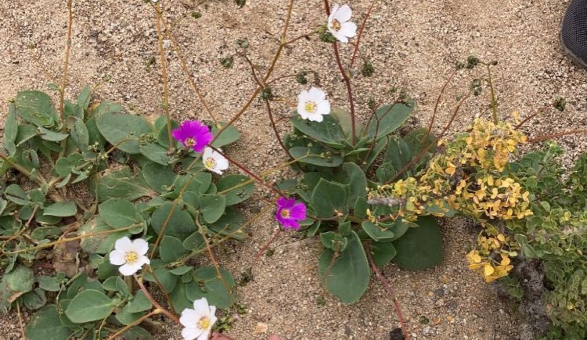 During our stop to see the coastal part of the desierto florido, we saw a rare flower—one that our guide had never seen before. It is a white version of one of the most common pink flowers that can be found in the desert.