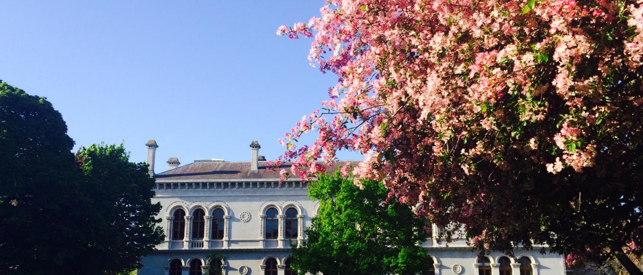 My favorite building at Trinity, the Museum Building, in bloom.