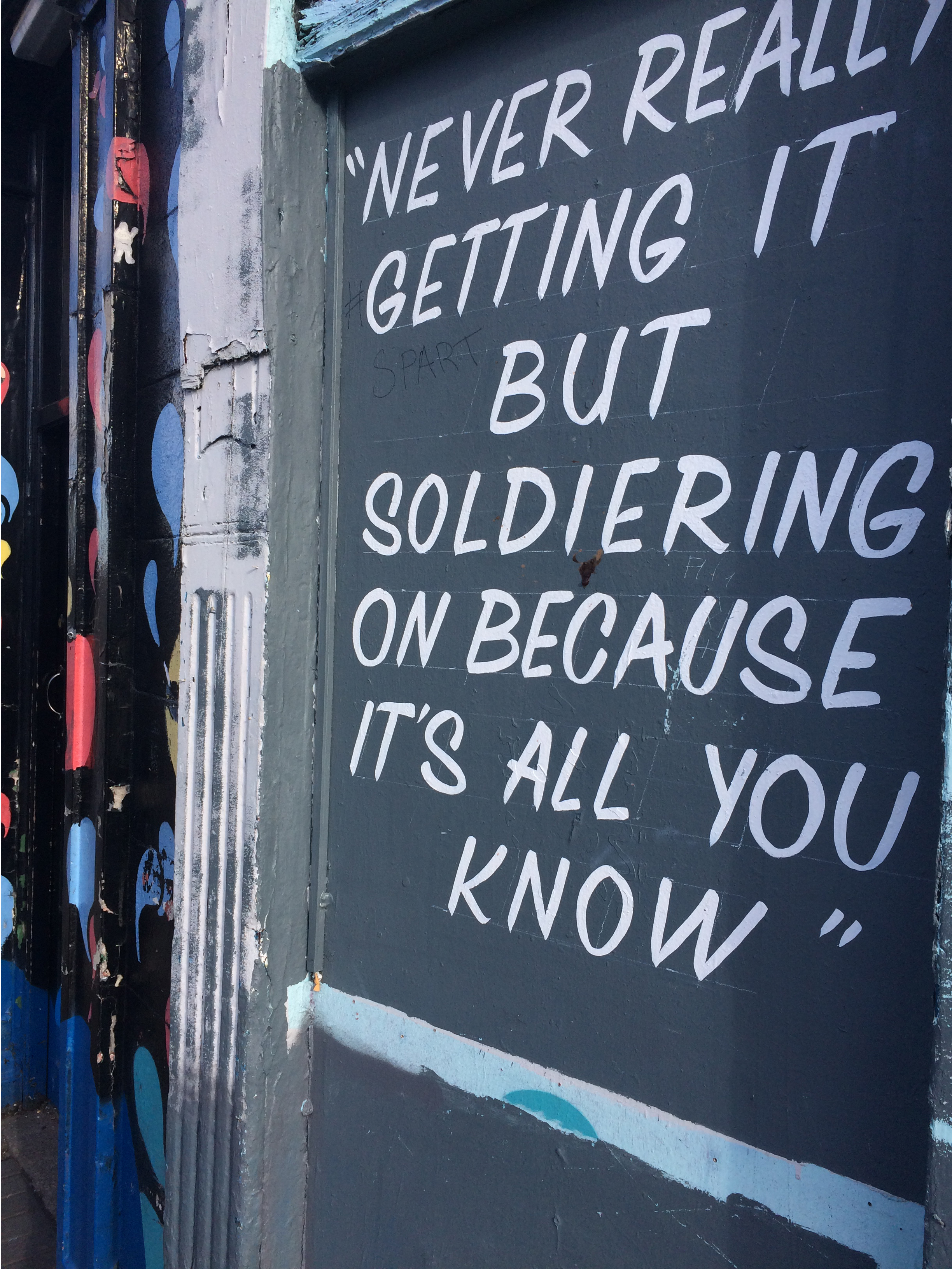 With the precious privilege that is time, the flaneur is independent from duties in his city. He observes what may be lost to his fellow street dwellers in their obligations to work and their distractions of play. Nothing and no one is deserving of his strides yet he walks with purpose. Beneath graffiti and abused sidewalks, he understands that the city is caked with layers of trouble and history and magic. The solar powered flaneur seeks refuge as a voiceless vessel in a crowd of chaos.