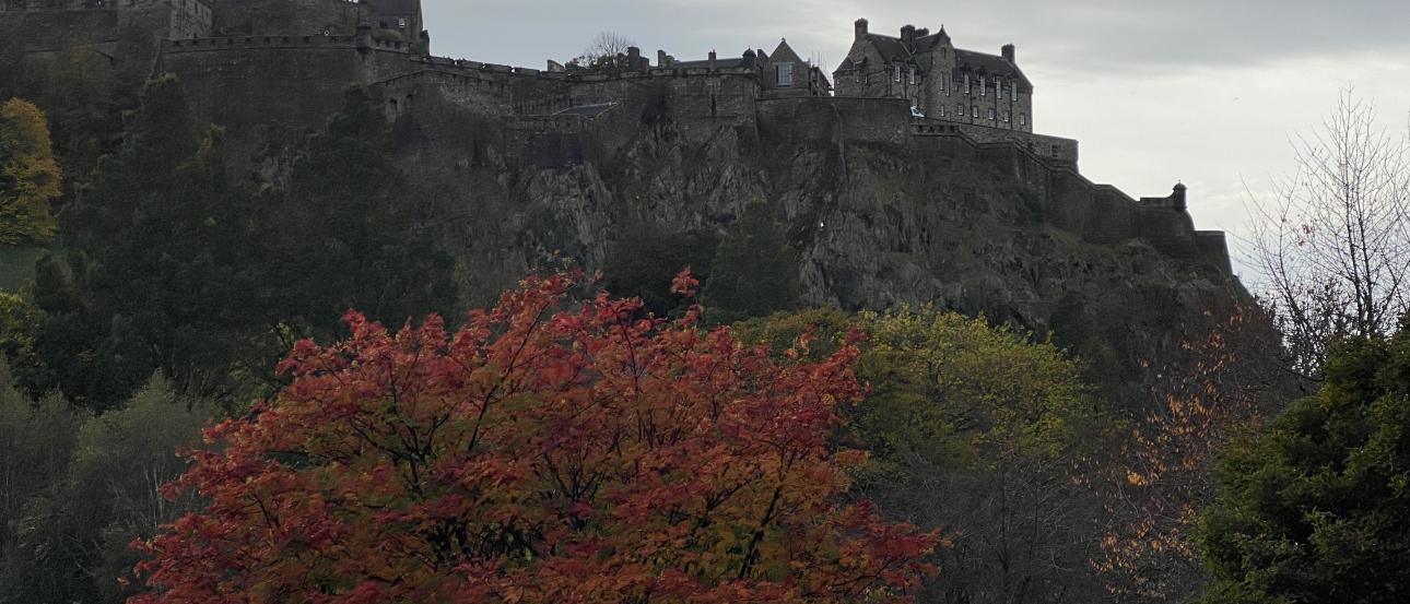 Edinburgh is a windblown medieval city on Scotland’s southern border. Buildings scale the hilly geography: from many winding streets you may look up and see Edinburgh’s stony castle where it stands born up on a green crag, withstanding the forceful gales of the sea. Peering through alleyways, you may also catch a glimpse of the Scott Monument, whose gothic spire looms over a sprawling park of lush, amber deciduous trees. Reddening leaves blow across cobblestone sidewalks, light mists wet the ground. On Halloween day, I was experiencing the city in its prime.