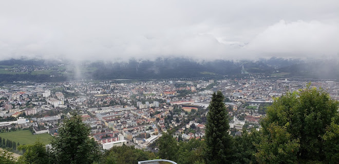 Once class was over on Friday, a few of us hopped on a train to Innsbruck, Tirol. In the western part of Austria, Innsbruck is a small mountain town. In Vienna, the weather was very hot and sunny. Emerging from the train in Innsbruck, we were greated with lots of rain and cold weather. Some of us were not dressed for that weather but we made a quick trip to our AirBnB. Day 1 was over just like that.