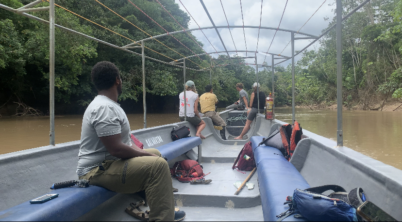 So like I said, very far, very middle of nowhere. Within the first two minutes of our second canoe ride we hit something. I shot a look at my other classmates that said a mixture of “hmm did you hear that and are we going to die?” Given that the canoe was made out of fiberglass we saw the sand bar that we hit dent the front of the boat and saw as the dent moved from the front of the boat to the back till we passed over it. I felt like I was in a cartoon as the indent passed my feet. But hey we made it! The boat drivers were honestly so impressive because the way the water levels changed daily along with so many storms and new debris in the river they had to be constantly looking at the currents and determining where to go. That second canoe ride was where we got our first true taste of the Amazon, we saw macaws, capybaras, and a caiman! From there, I knew that the next two weeks were going to be insane and unforgettable.