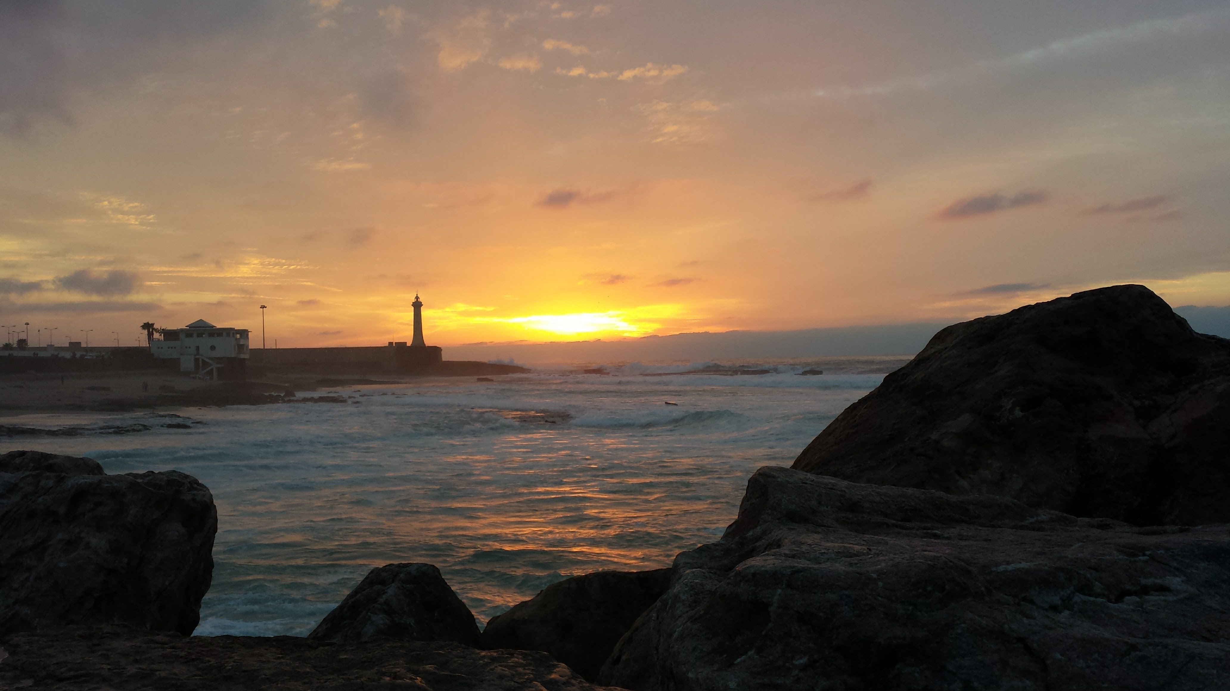 The last few weeks of my internship, our taxi drivers started taking us back to the old medina by way of the road along the coast. At 8pm, right around sunset, the view of the horizon and the waves is incredible. The road is just separated from the water by sidewalk and a little bit of space where there are occasional soccer fields or parking lots. I’m still meaning to take a walk along the sidewalk there, but I looked forward to that drive home every Monday and Wednesday night just to watch the huge waves crash on the seawall all the way home.