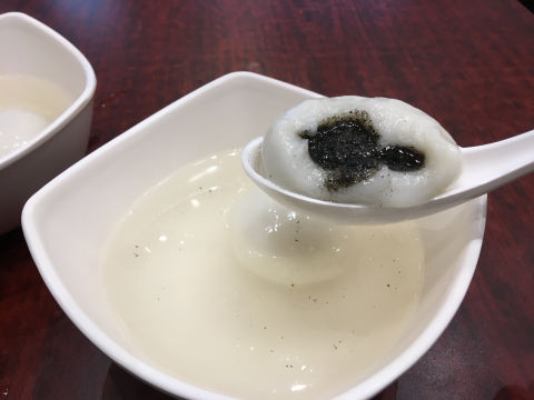 Now from potentially least exciting to most exciting! This right here is 湯圓(Tangyuan) and I know you may be thinking, "You should not eat whatever that is because it is definitely the black plague." Actually, that black stuff right there is black sesame seed, and it gets boiled inside these glutonous rice balls. This right here is my favorite food I've had so far. It has a sweet flavor and can double as both breakfast and dessert. Win win.