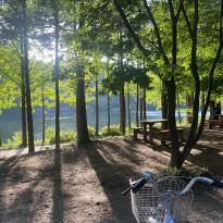 Nami Island is a small wooded island one-and-a-half hours from Seoul. We got to the Name Island Wharf by bus and subway, and then did one of the adventure experiences to get to the island: zip-lining and boating. On the island, we rented bikes and rode around the island for a couple hours, admiring the fall scenery.