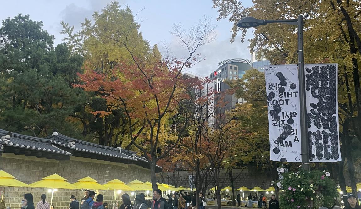 My apartment is on a main street in a business district with a lot of traffic, which can be, frankly, a bit overwhelming. But if I walk about 5 minutes from the apartment, I can turn onto a beautiful, leafy pedestrian-friendly street with cafes, restaurants, convenience stores, and a great waffle stand. This street, called Jeongdong-gil, has old, beautiful architecture, much of it from the 1930s, and is surrounded by elegant stone walls, originally from the Joseon period. There’s many brick buildings, including an old Franciscan friary, a hang-out for diplomats, and a high school which dates back almost a hundred years. The street leads up to the beautiful Deoksugung Palace. On this street, there are often night markets, which are complemented by the stone walls that light up at night. This is also one of the great places to admire Seoul’s fall foliage. I often take strolls here just to clear my head or I come to this street to do homework and get a coffee at one of the cafes. If you’d like to come here, I’d recommend checking out San Damiano book cafe, Jeongdong Coffee, Le Pul Cafe, Cafe Russo, and the Roundnd bakery.