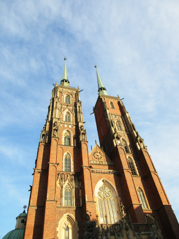 At the Cathedral of Saint John the Baptist on Cathedral Island, some friends and I bought tickets to travel to the top of one of the spires of the church. We gained a 360 degree view over Wrocław which was as beautiful as it was windy. The Cathedral itself had suffered from a few fires, which we saw in pictures on the inside. The style of the church is one of my personal favorites; Gothic.