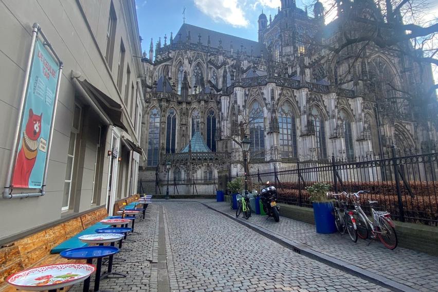 We then stopped at a bakery for Bossche Bollen, which is a round pastry covered in chocolate and filled with whipped cream. As we ate our Bossch Bollen, Irina took us through the city to show us the highlights. She lived there for a year so she was able to show us the popular spots and the places tourists wouldn’t think to find. She showed us a beautiful spot to see the cathedral, where no one else was and there was no construction in sight. The artist, Hieronymus Bosch, who painted the Garden of Earthly Delights, is from Den Bosch and throughout the city there are statues of some of the different figures. They can be hard to find but Irina showed us one by a canal.