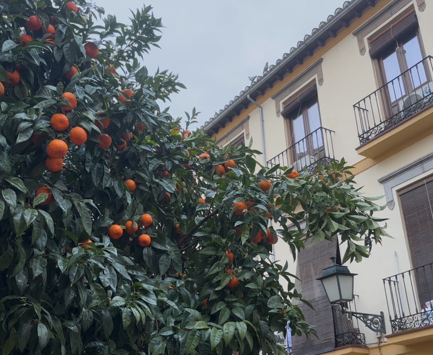 The first thing I noticed stepping off the bus to Granada were the orange trees. They line nearly every street, gold-green leaves drooping with saffron fruit. Along with orange trees, you’re likely to encounter palms, pink flower bushels, and brambles of half-dead roses.