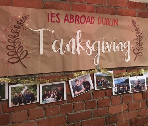 - I had the chance to enjoy an IES Abroad family dinner for Thanksgiving. Sitting in a room with fifty other students and staff was incredibly special. One of the students made a banner that said “IES Abroad Dublin T’anksgiving.” There were pictures surrounding the sign of students at different events and trips throughout the semester. It was a bitter sweet moment. We all have a little under a month left in Dublin. Most of us come from all around the United States, if not the world. We may never see each other again, but we all share one very important thing in common: our semester abroad in Dublin, Ireland.