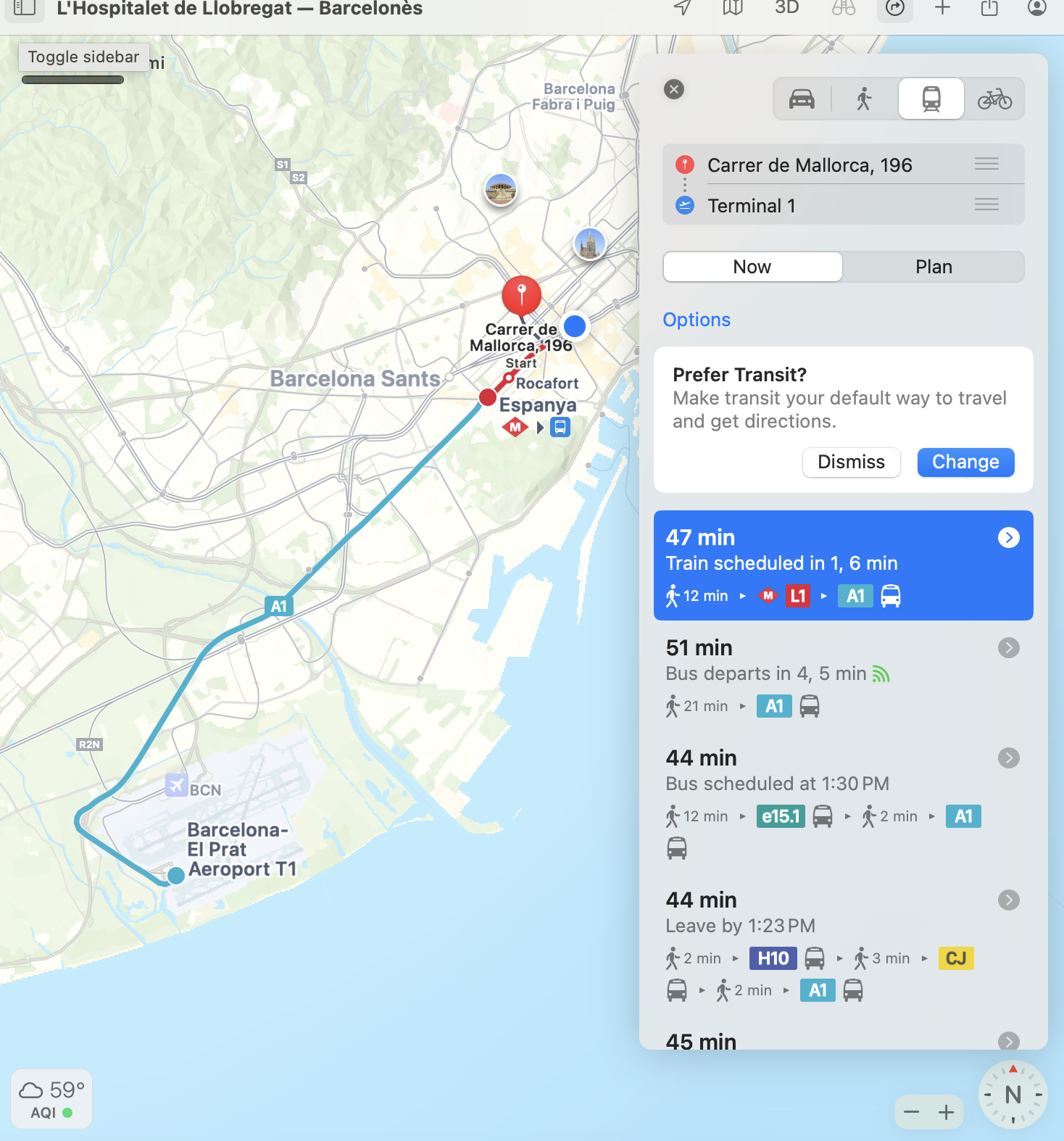 Public transit can take longer, but it's a huge money saver- taxis to the Barcelona airport can cost upwards of 50 euros one way, while a comprehensive metro ticket costs under five. Budget your time and money to get the most out of your trip.
