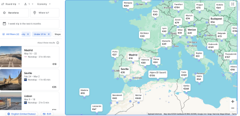 Google Flights compares prices across airlines to help you find the best deal. Its location feature also allows you to see the cheapest time to travel to a specific location. Similarly, you can select a time period, and the service will show you the cheapest places to travel within that time.