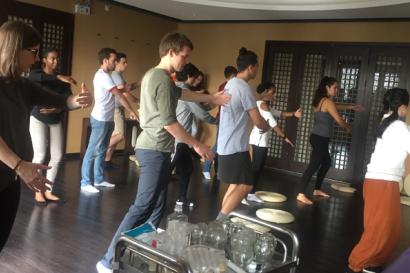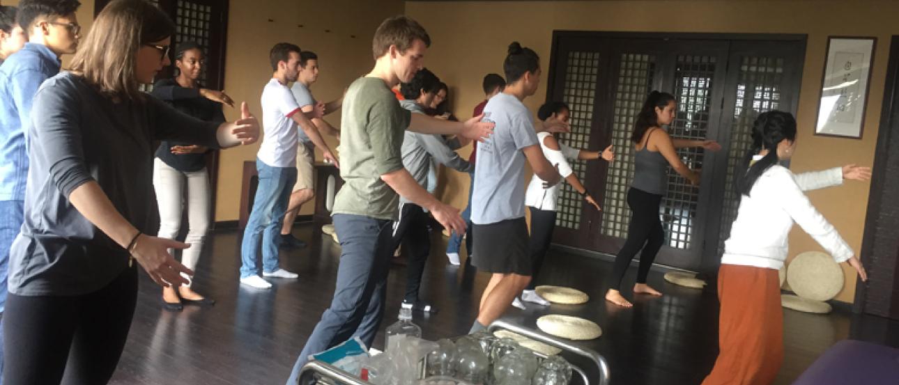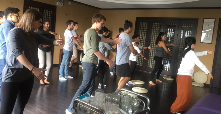 After watching their peers receive Traditional Chinese Medicine treatments, it was time for the whole IES Abroad class to try something new. The visit concluded with a lesson from a tai chi master on how to perform slow, rhythmic, meditative tai chi movements such as Cloud Hands.