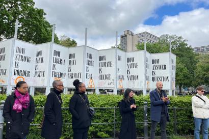 That’s why we hosted our second-annual Diversity Workshop Abroad (DWA), this time at our Berlin Center, during the Spring 2024 semester. The workshop was led by IES Abroad U.S. staff Brittani Smit, Noelle Baldwin, Quinn McMurtrey, and Ruby Shields, along with Berlin Center Director Barbara Finke and Center staff. DWA participants explored the complexities of Berlin’s past and present, incorporating the role of racism, antisemitism, migration, colonialism, and war, allowing these concepts to deepen their understanding of the city.