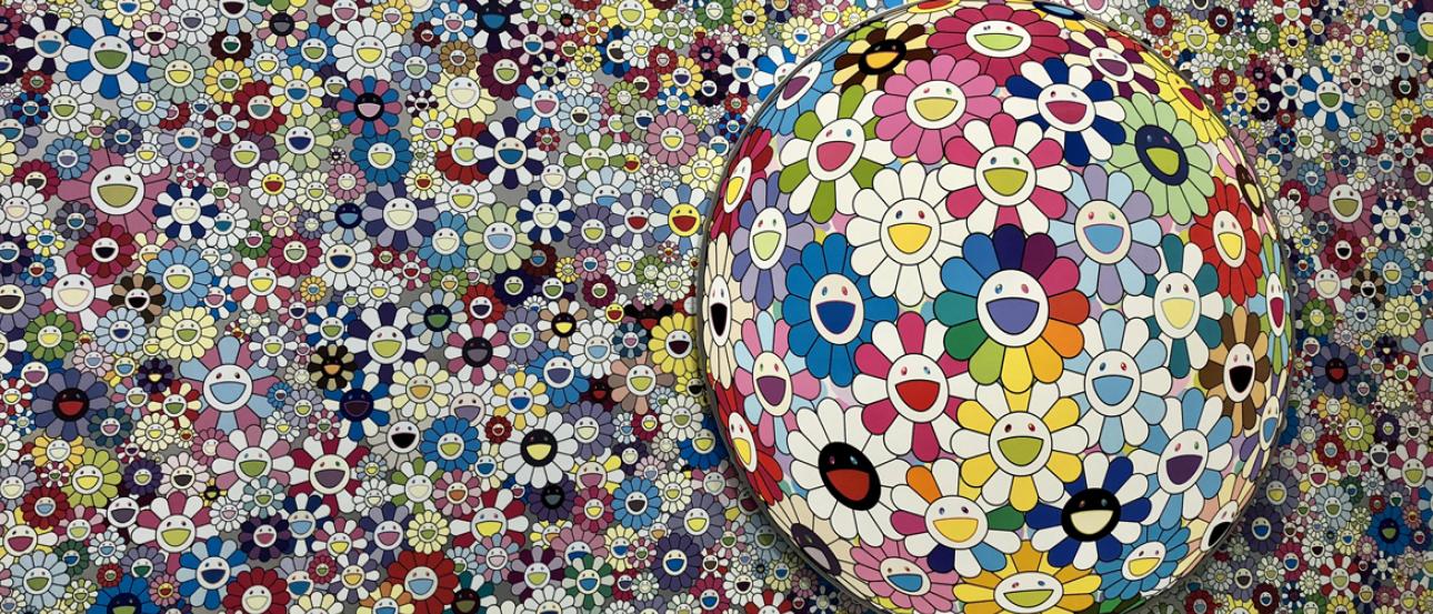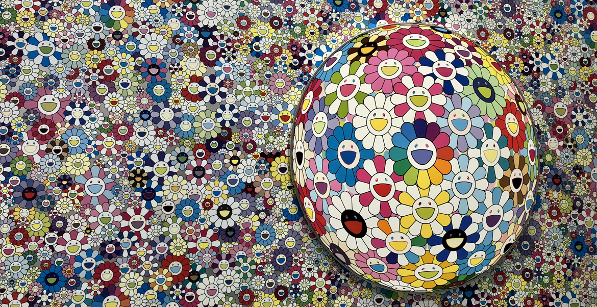 Virgil’s design work is one-half of the Virgil Abloh x Takashi Murakami exhibit that Sean and Abe viewed. Known for his colorful art that blurs the line between fine art and commercial media, Japanese artist Takashi Murakami has exhibited his art around the world. He also donated a piece of art to the foundation’s Recto/Verso #2 exhibit that was on display the same day Sean and Abe visited.