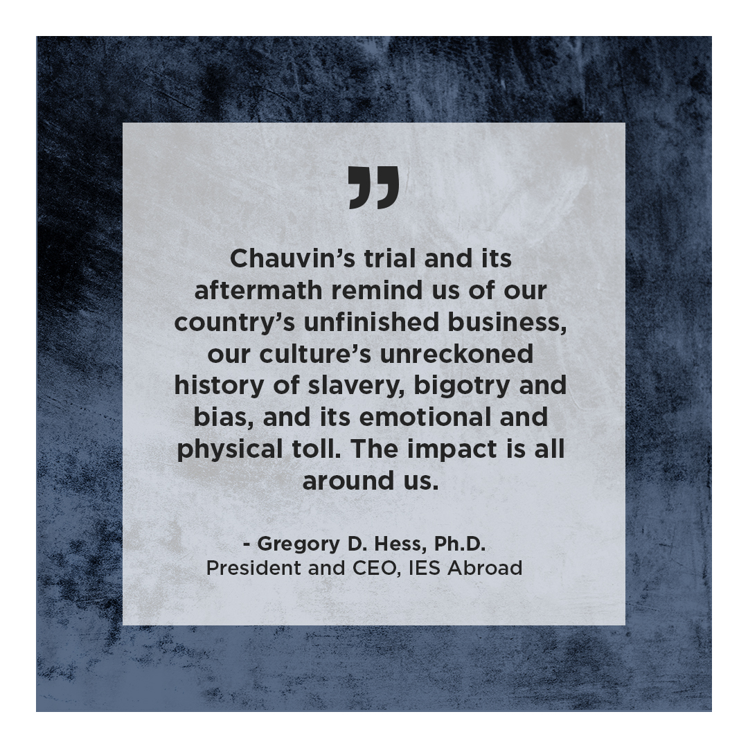 In the message below, IES Abroad President and CEO Gregory D. Hess, Ph.D., wrote to the organization after the Derek Chauvin Trial guilty verdicts were announced on April 20, 2021.