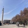 students checking their phone in front of the European Council
